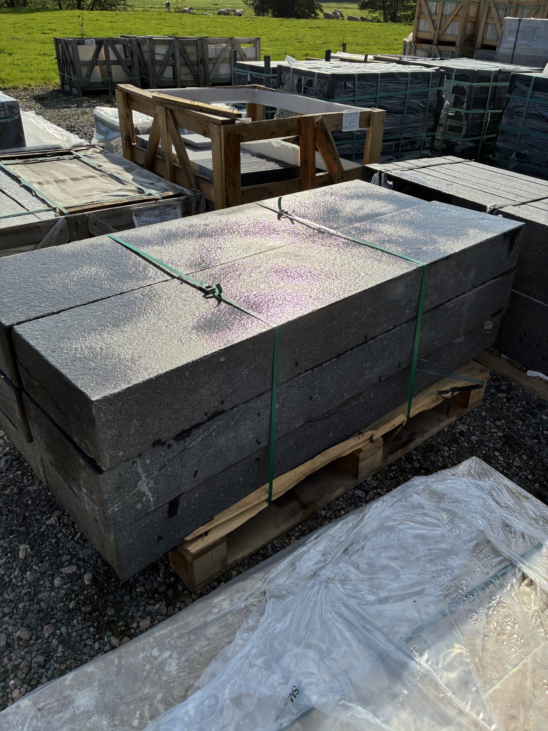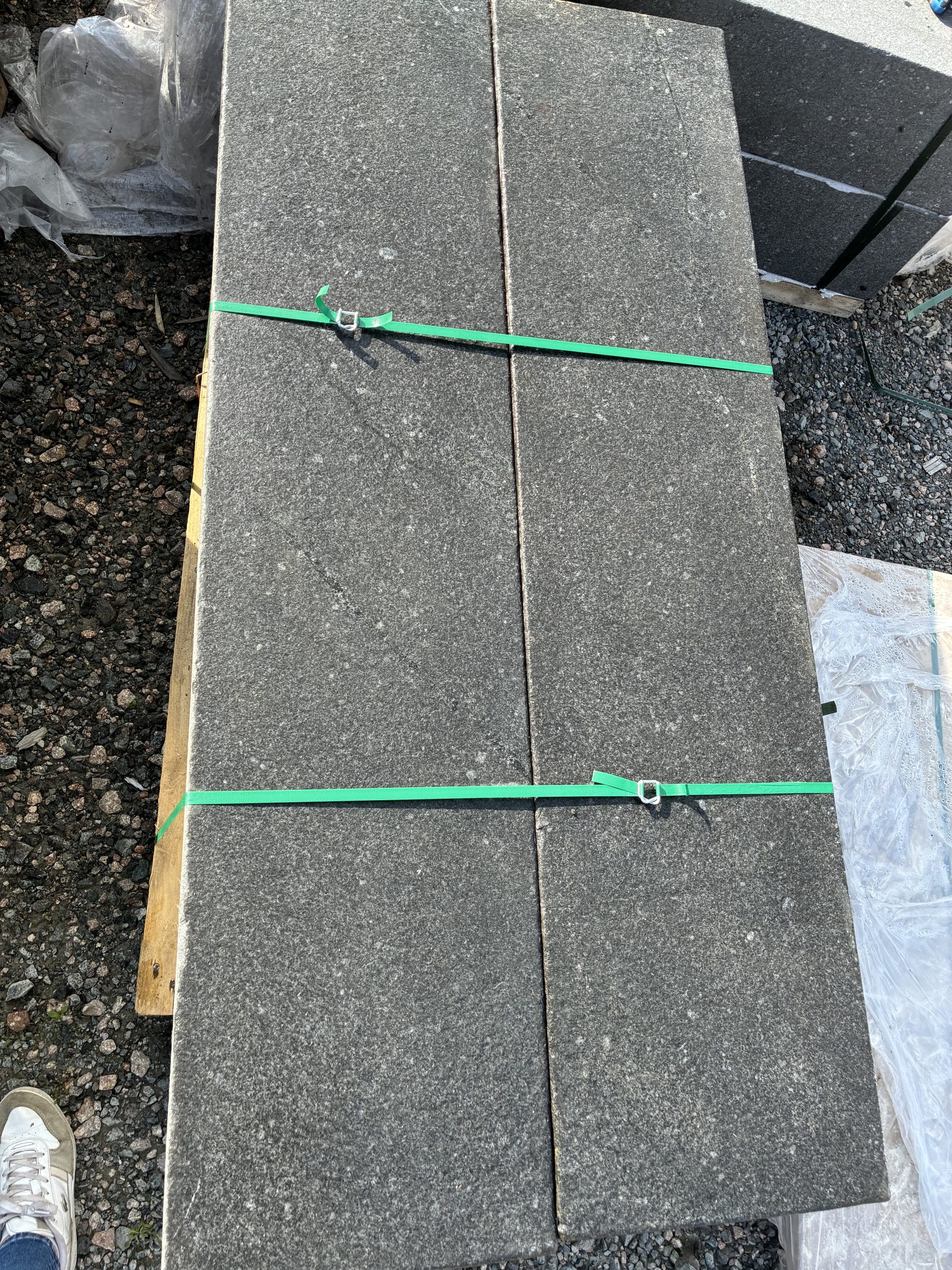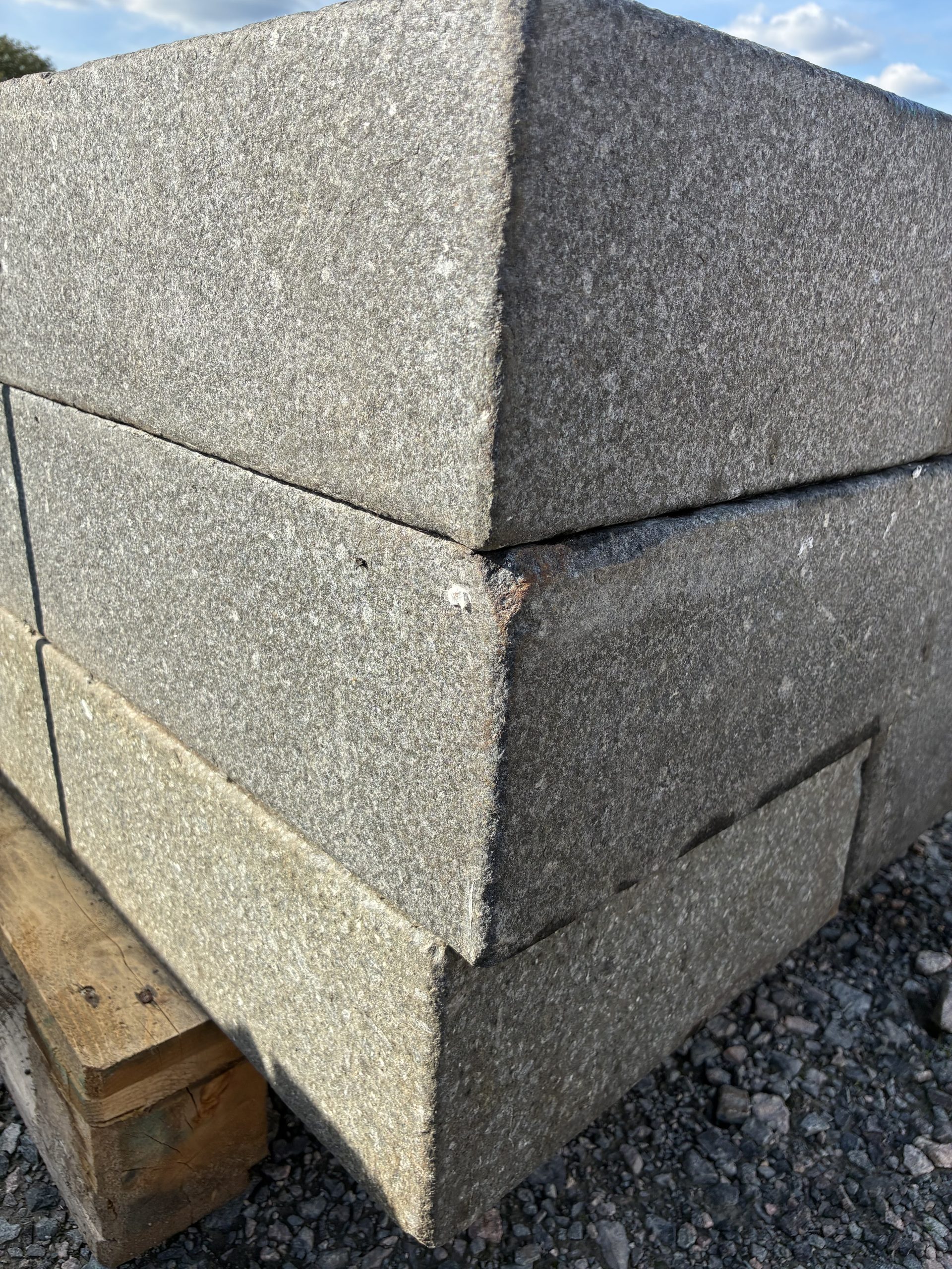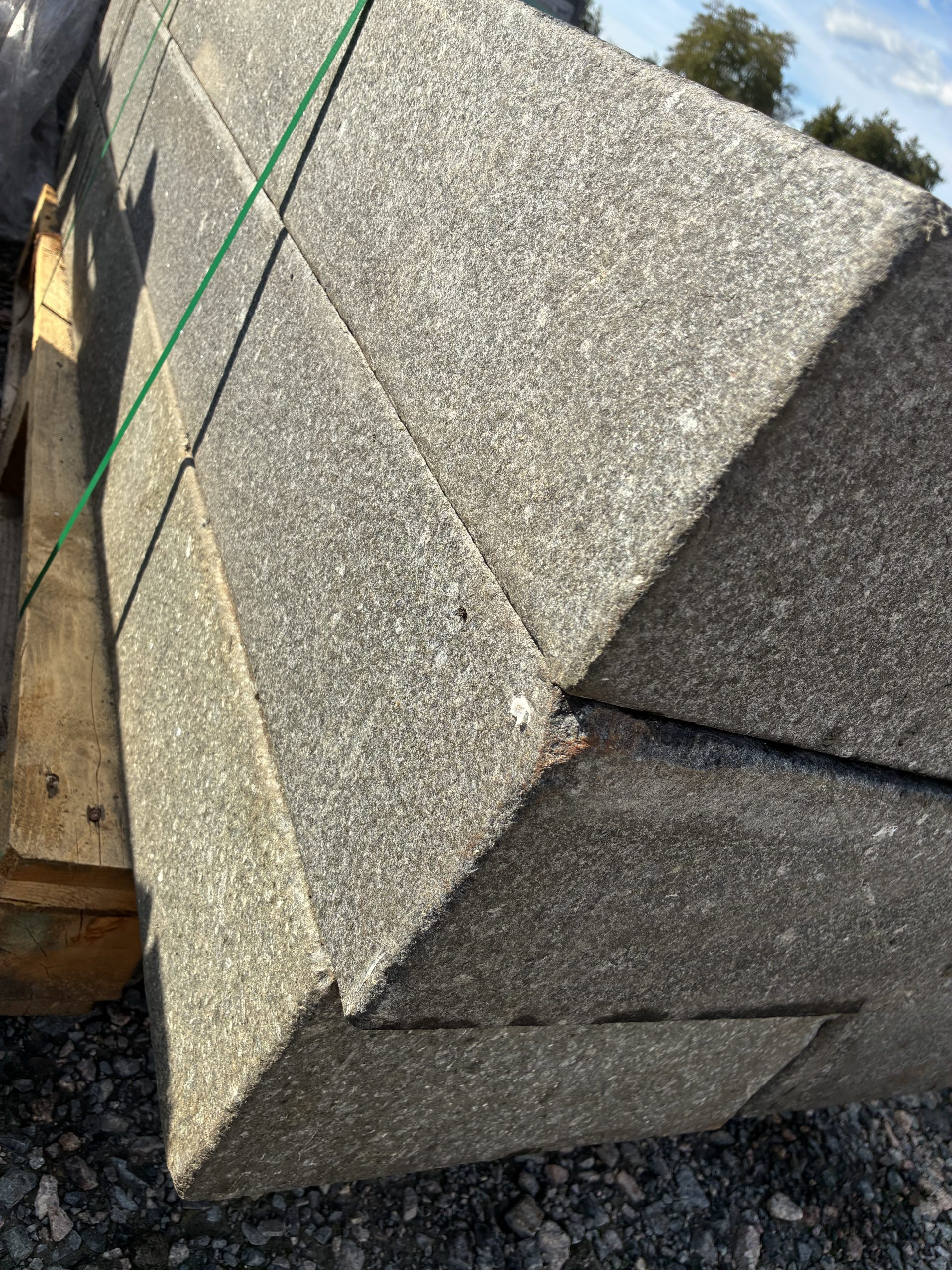 Marche – granit anthracite – bord chanfreiné – finition flammée