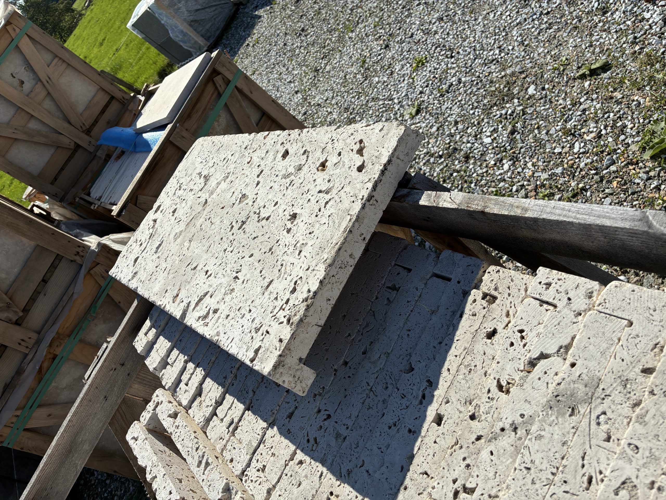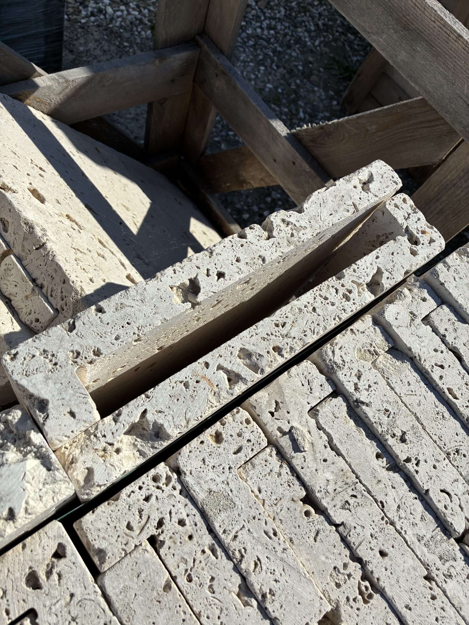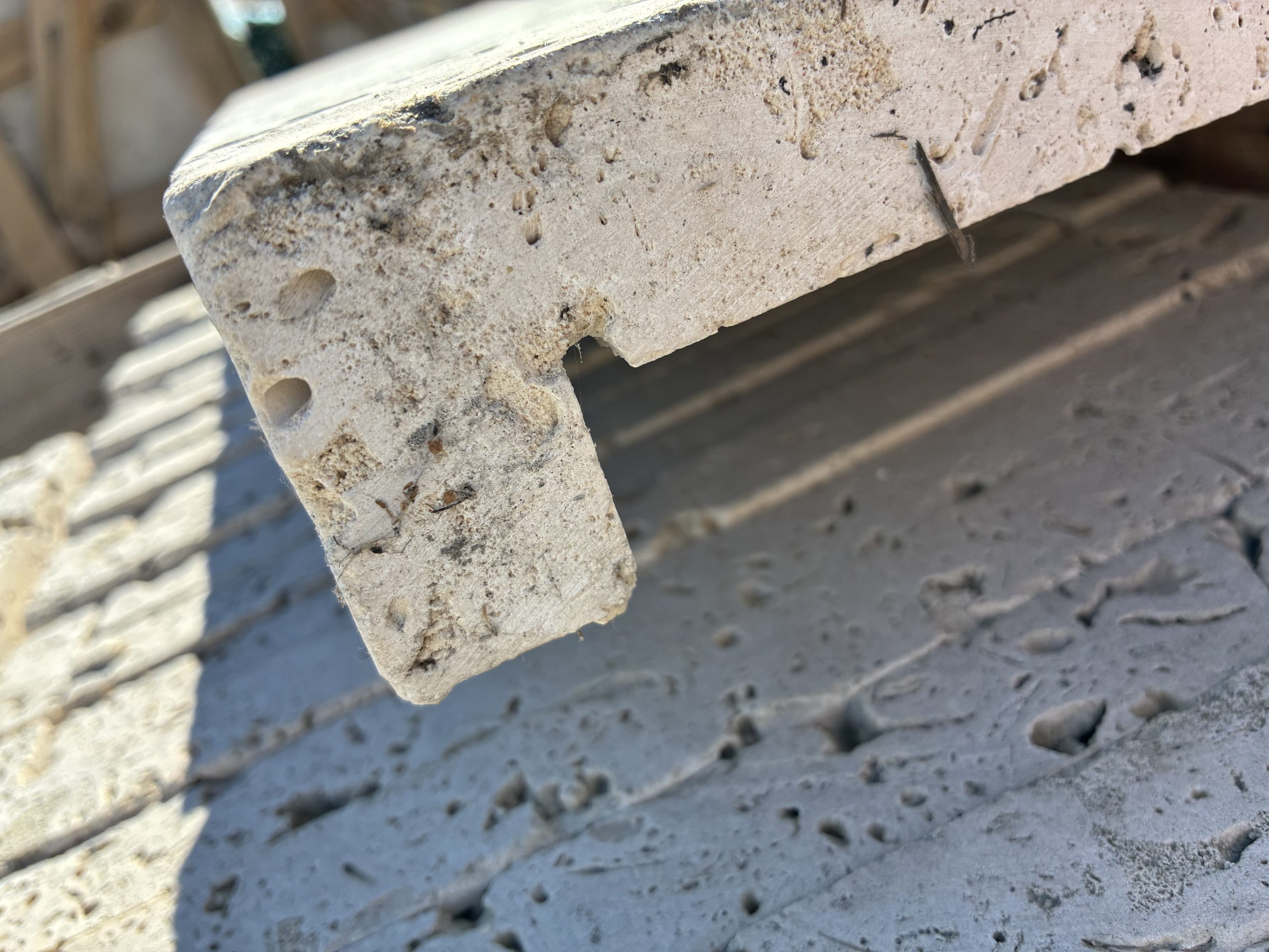 Marche – travertin antique – bord droit – goutte d’eau sur un grand côté