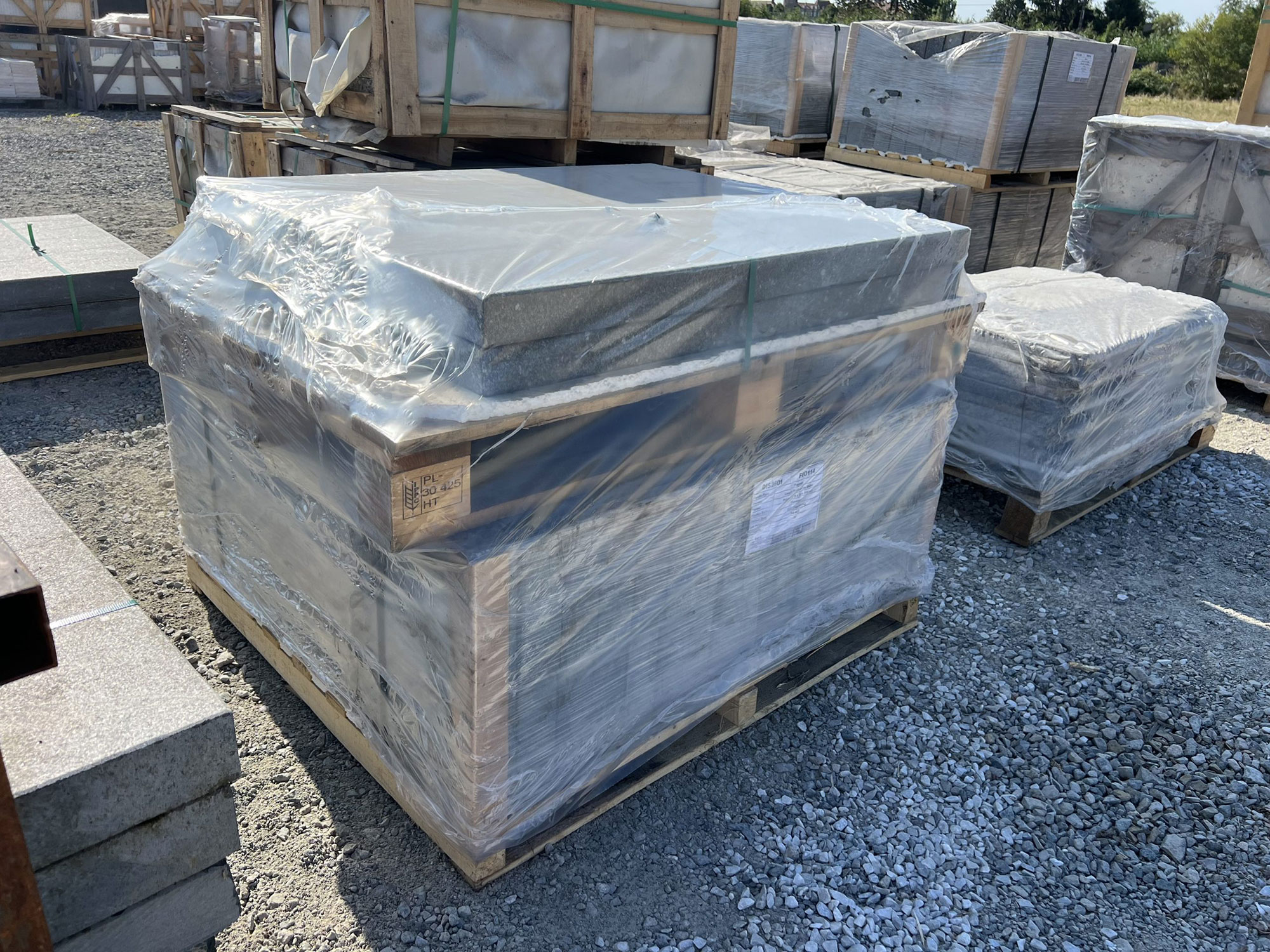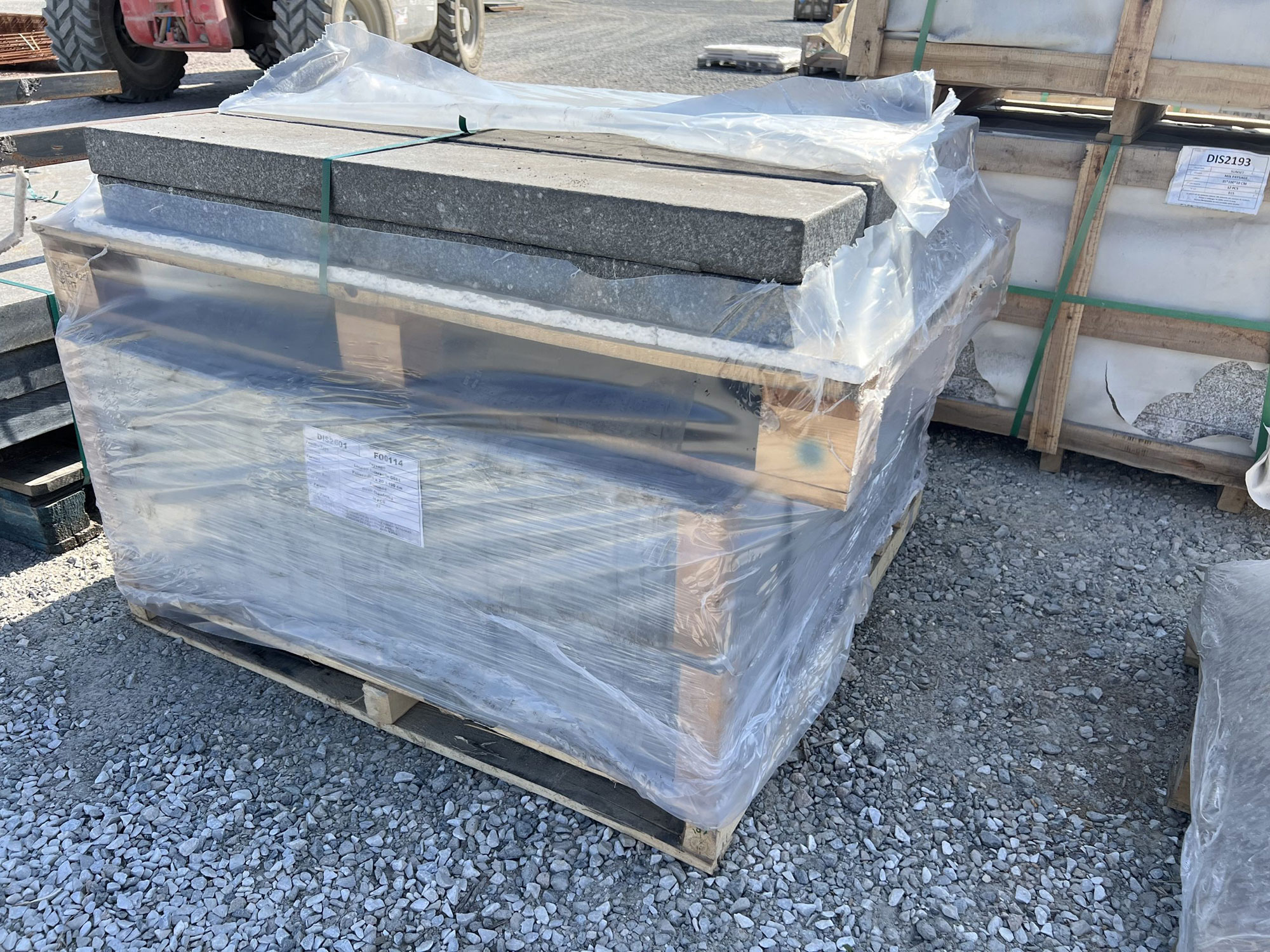 Palissade/Bordure en granit gris anthracite. Finition flammée. Bord droit chanfreiné.
